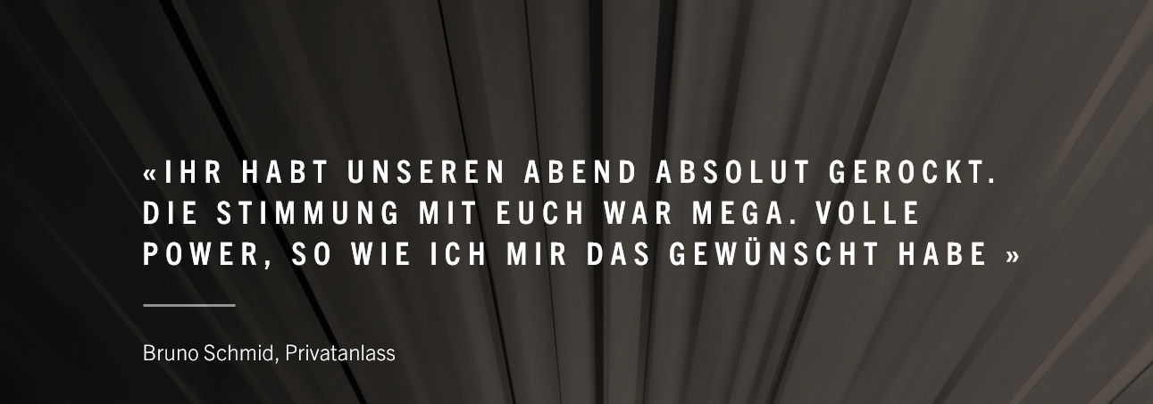 Auch hier richten wir unser Repertoire stark nach den Wünschen unserer Auftraggebenden. Wir bieten vorwiegen tanzbaree Musik in den Stilrichtungen Funk, Disco, Schlager und vielem mehr.